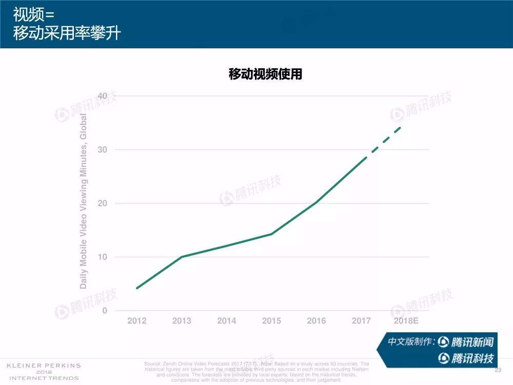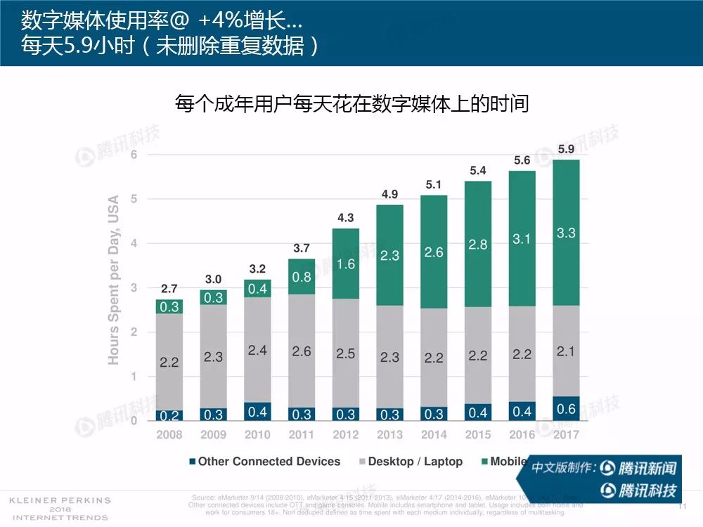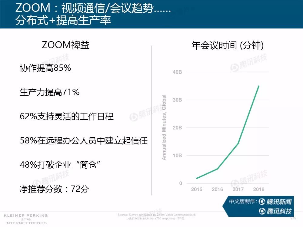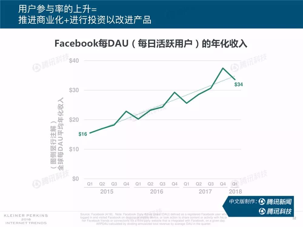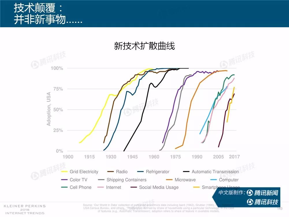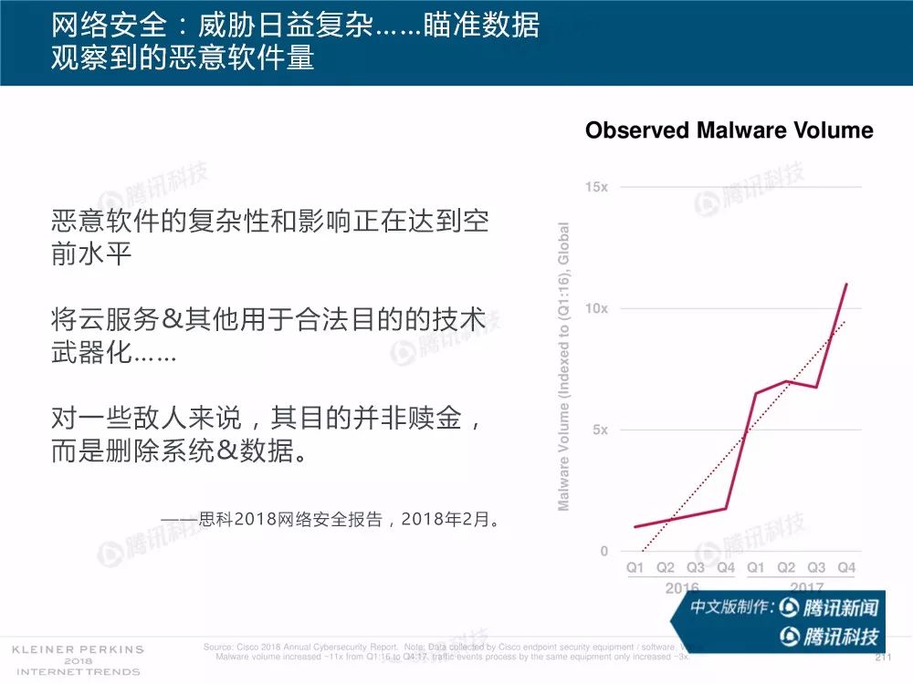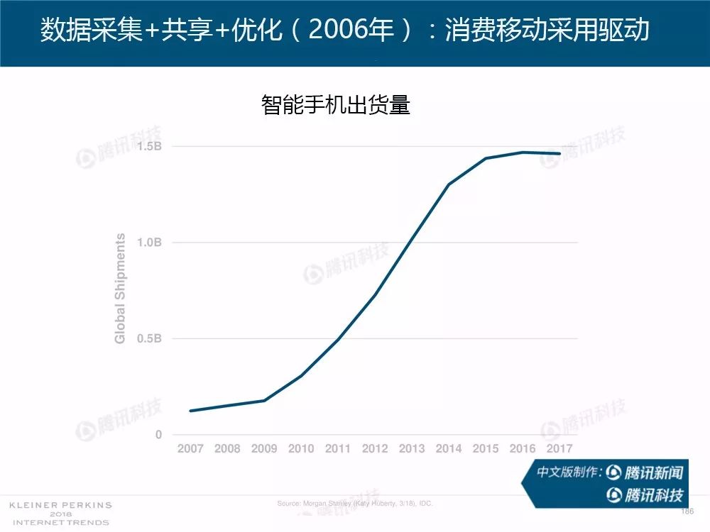 据外媒报道,有着“互联网女皇”之称的玛丽-米克尔(Mary Meeker)周三在美国加利福尼亚州帕洛斯韦尔德举办的Code大会上发布了2018年的互联网趋势报告。作为风投公司凯鹏华盈的合伙人之一,这是她第23次公布互联网报告。
