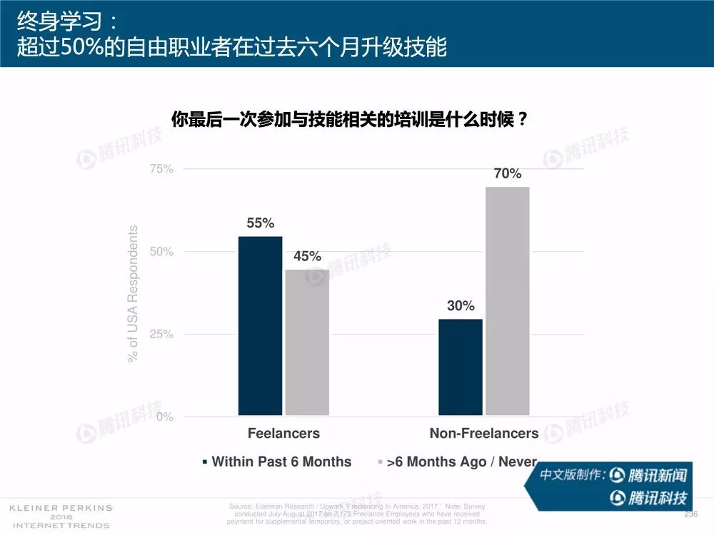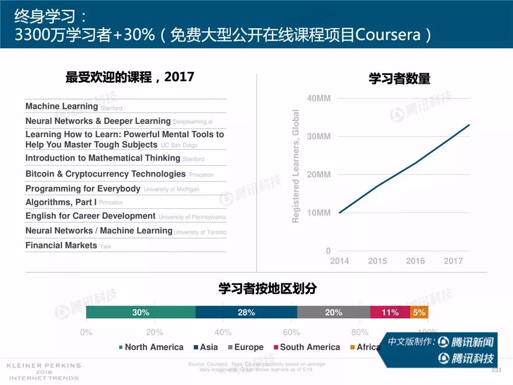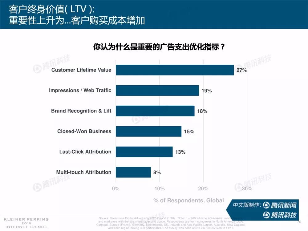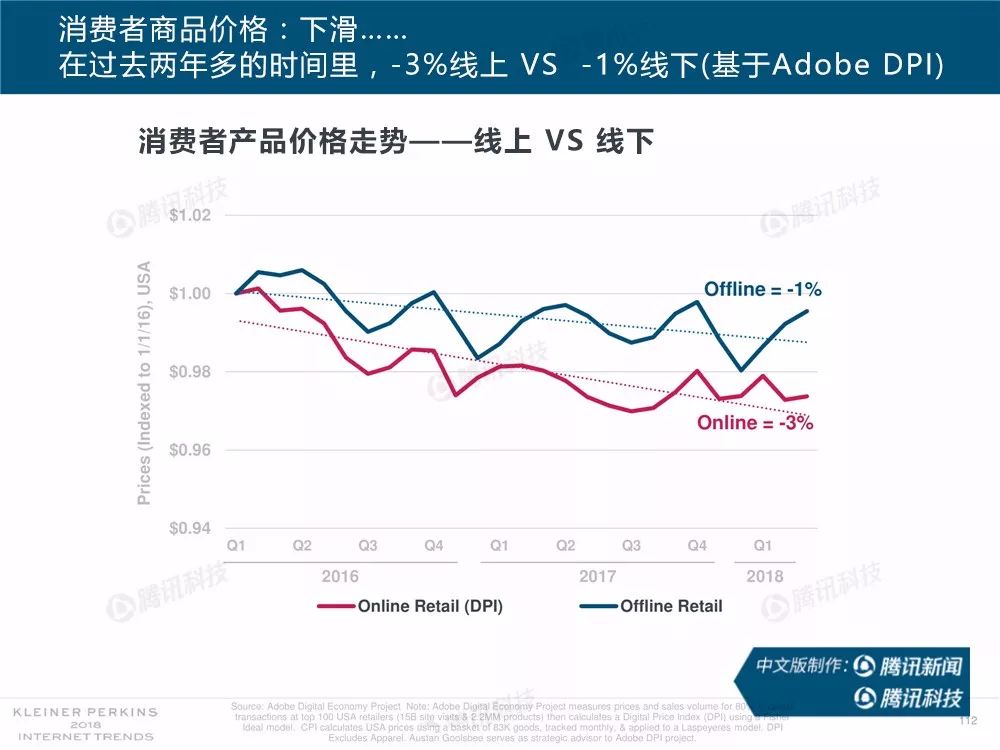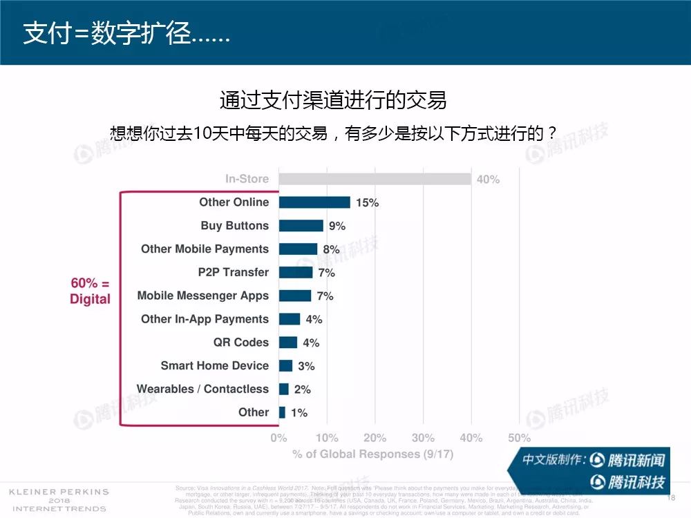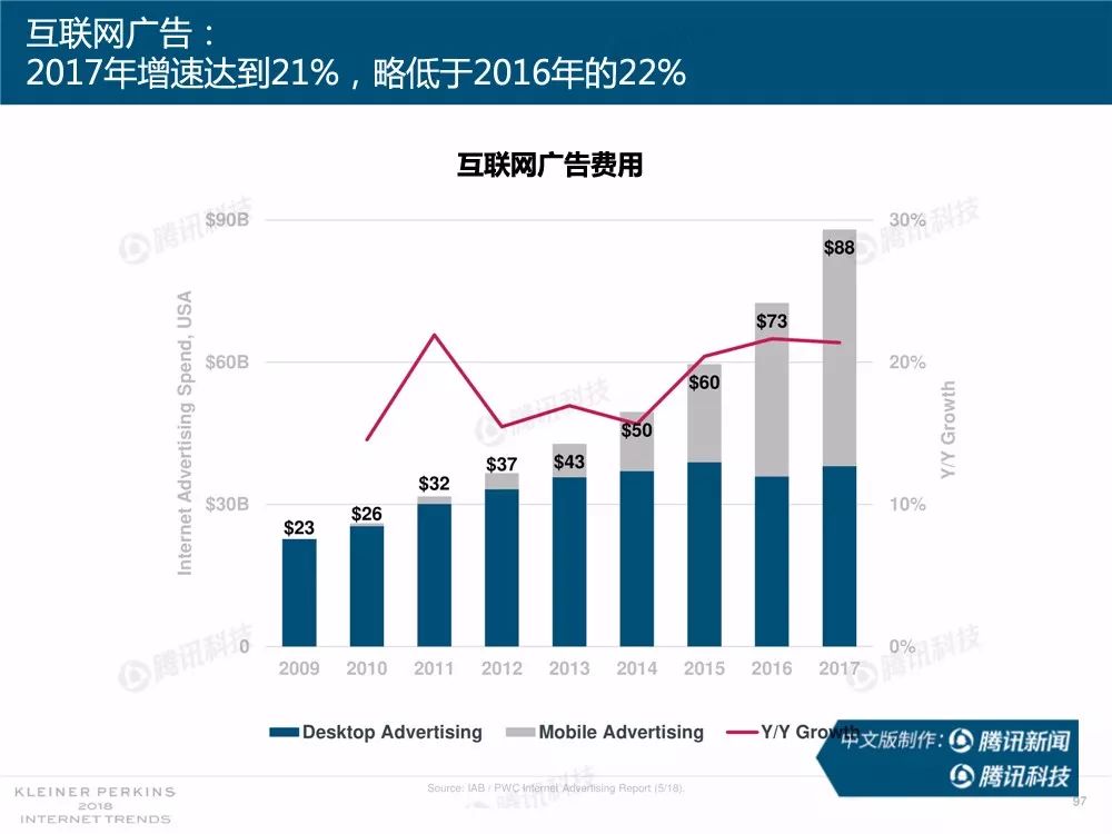 据外媒报道,有着“互联网女皇”之称的玛丽-米克尔(Mary Meeker)周三在美国加利福尼亚州帕洛斯韦尔德举办的Code大会上发布了2018年的互联网趋势报告。作为风投公司凯鹏华盈的合伙人之一,这是她第23次公布互联网报告。