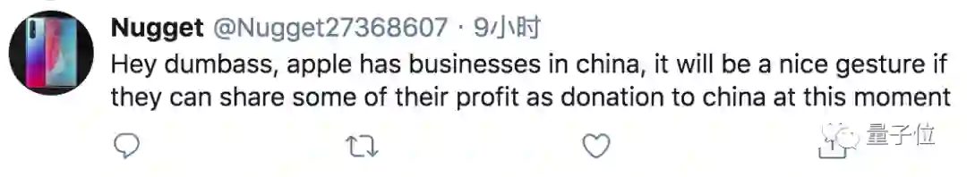 还有人提到,苹果在中国有那么大的业务,中国遇到疫情主动出来捐赠是件非常好的事儿: