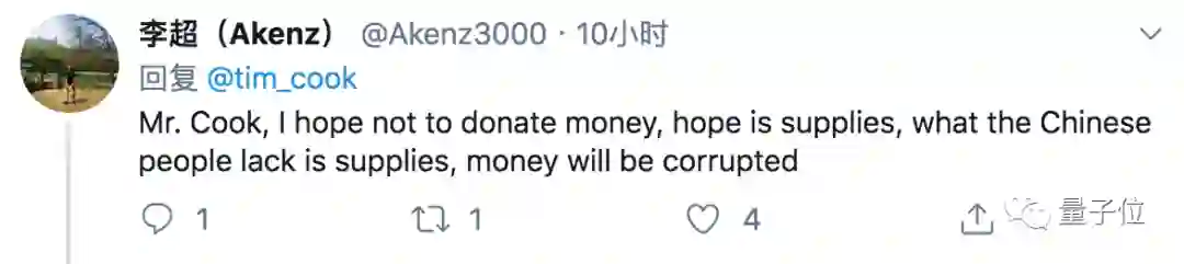 也有人提醒库克,最好直接捐物资,更容易帮助到疫区的人们: