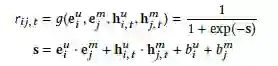 我们采用 attention 机制动态调整 MF 和 RNN 的融合方式,如图 Figure2(d),公式如下:
