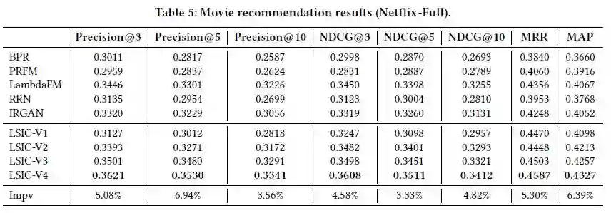 我们对 LSIC-V2 进展扩展,采样 MF 得到的 latent factors 作为两个 LSTM 的 static context vectors 加到每个时刻 t 的输入中,如图 Figure2(c)。
