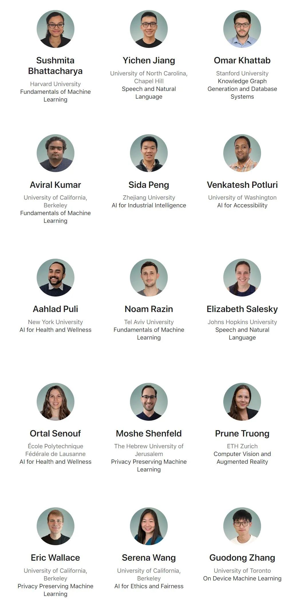 据介绍,苹果奖学金的设立是为了表彰在计算机科学与工程领域中具有潜力且做出贡献的博士研究生。因此,奖学金的评判标准基于参选学生的创新研究、所在领域的领先者或合作者对他们的评价,以及他们在 AI/ML 领域所取得的进步。