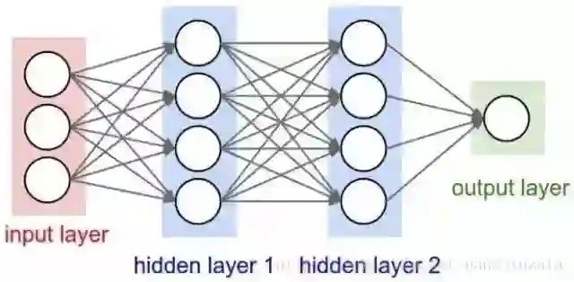 7)MLP(多层感知器):单个神经元无法执行高度复杂的任务。因此,我们使用堆栈的神经元来生成我们所需要的输出。在最简单的网络中,我们将有一个输入层、一个隐藏层和一个输出层。每个层都有多个神经元,并且每个层中的所有神经元都连接到下一层的所有神经元。这些网络也可以被称为完全连接的网络。
