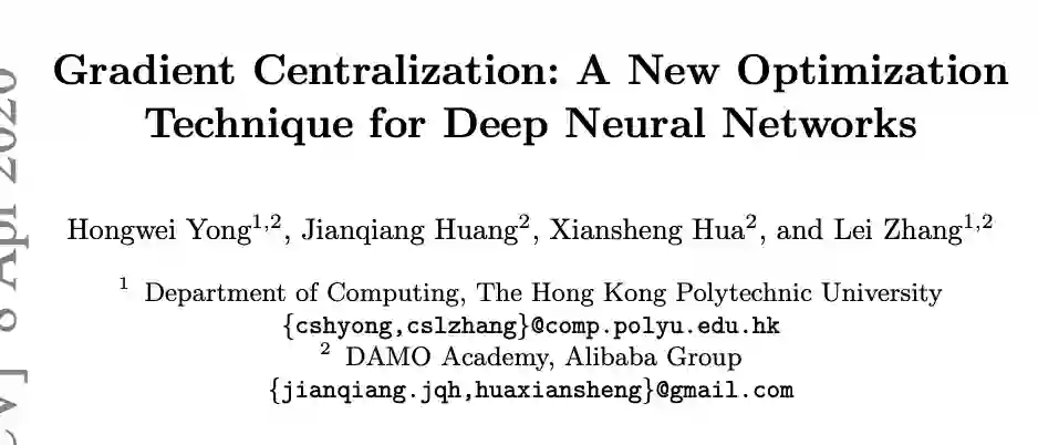 论文: Gradient Centralization: A New Optimization Technique for Deep Neural Networks