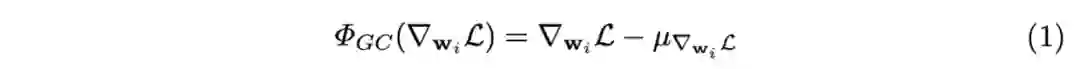 对于卷积层或全连接层的权值向量 ,通过反向传播得到其梯度 ,然后如图b所示计算其均值,GC操作 定义如下: