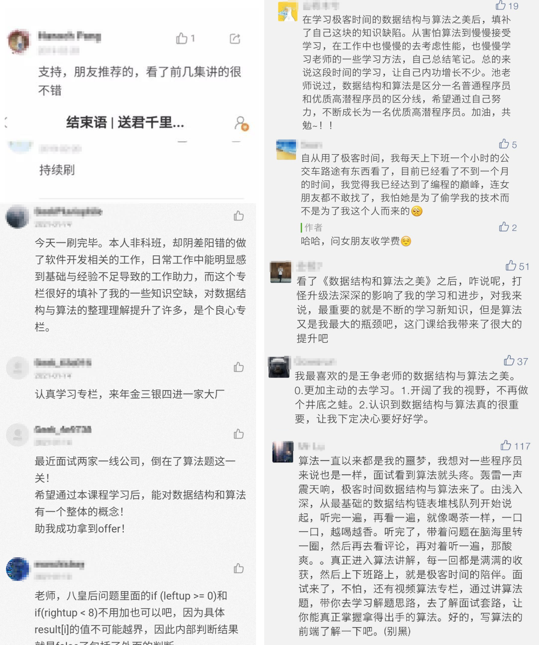 再说回课程,作者王争是前 Google 的工程师,也陆续干过架构、做过产品、带过团队、创过业。工作十多年,始终没有脱离编码第一线。而且他从读研就开始钻研算法,实战经验相当丰富。