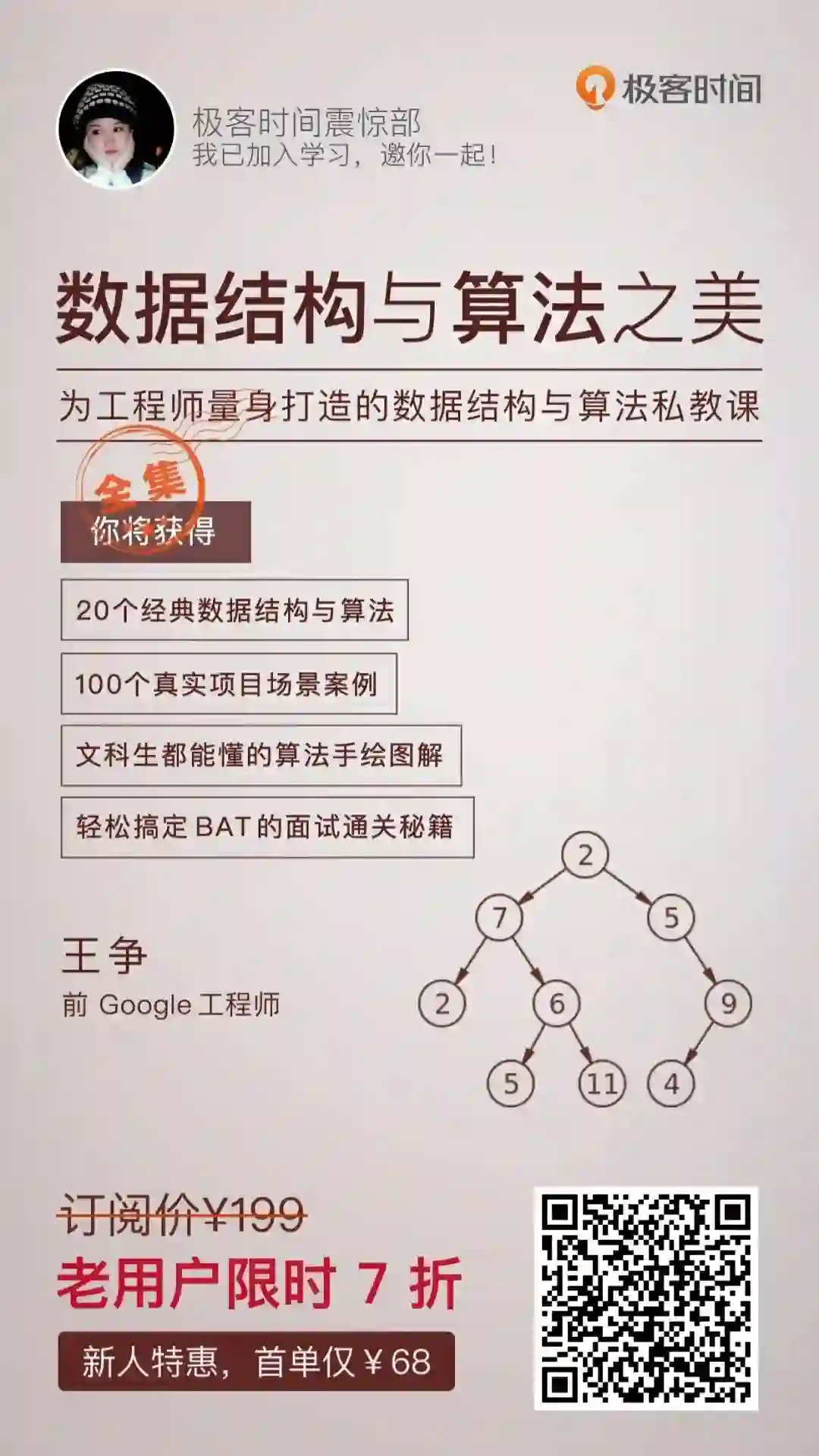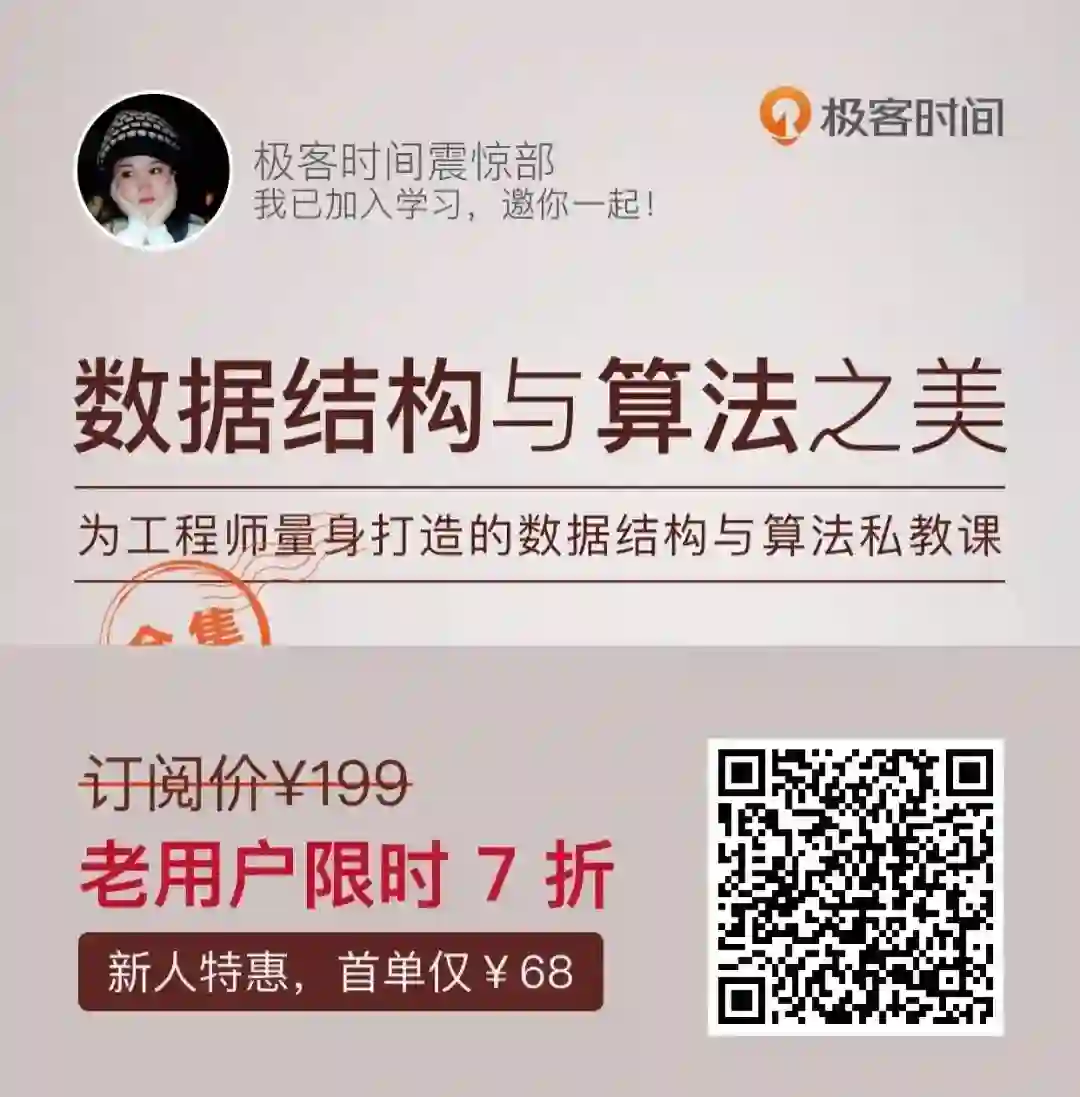 这个专栏正在做活动,原价 ¥199,现在新人特惠,仅需 ¥68!所以知道活动的消息后,我马上推荐给你。这是我认为市面上最适用于工程师的算法课,口碑也非常好,通俗易懂。看下面👇