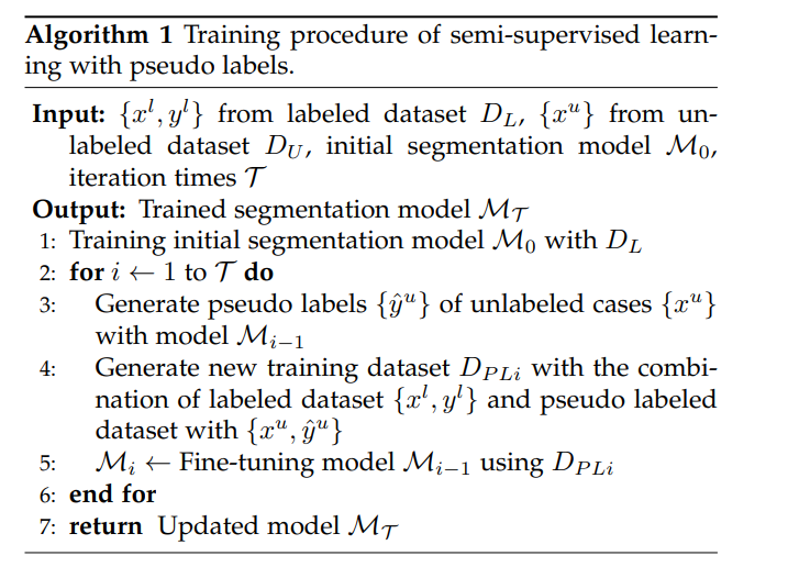 我们主要将这些半监督医学图像分割方法分为以下三种策略: 1) 带伪标签的半监督学习,将未标记的图像通过分割模型进行预测和伪标记,然后作为新的示例进行进一步的训练。