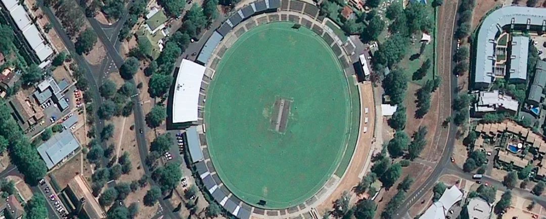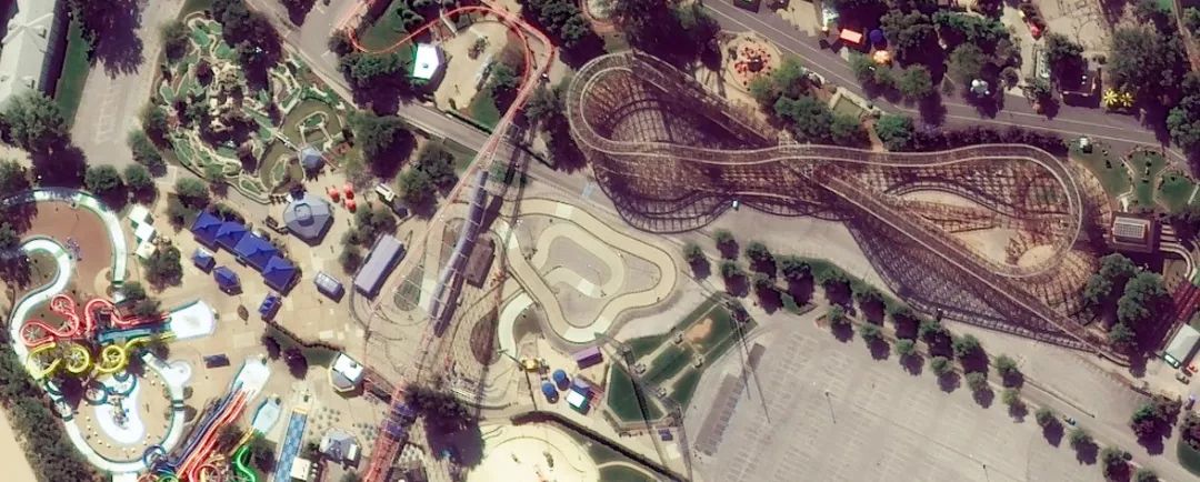 GeoEye-1拍摄的50厘米分辨率照片。上图为美国俄亥俄州游乐园,下图为澳大利亚堪培拉市体育场。