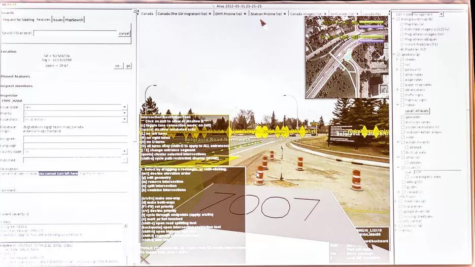 Ground Truth当然很好,但这是个前无古人的项目,没有人知道到底要怎么做。Ground Truth团队做的第一件事,是开发标注平台,它的名字叫Atlas(巨人)。它有点像Esri的专业软件,但为Google Geo团队的具体情况做了很多的改进。据看过它的人说,其界面有点像三款软件的混合:Google Earth,Street View,Adobo Illustrator。使用者可以直接在地图上画线,添加注释。
