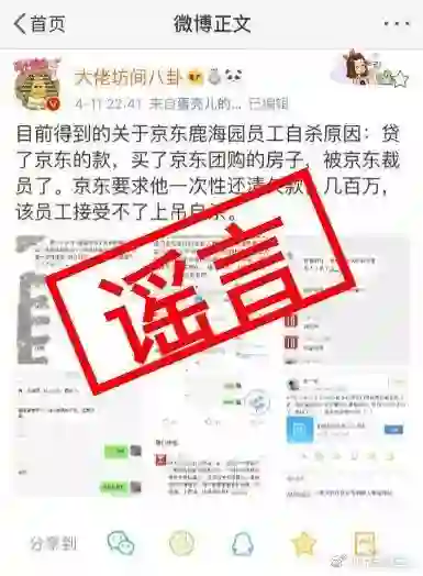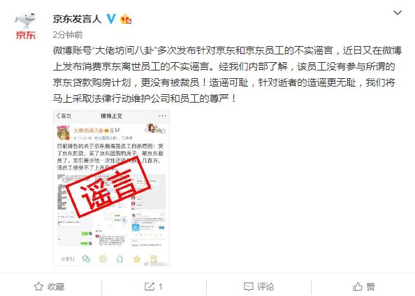 8.京东回应“员工因裁员自杀”:假的 对逝者造谣可耻