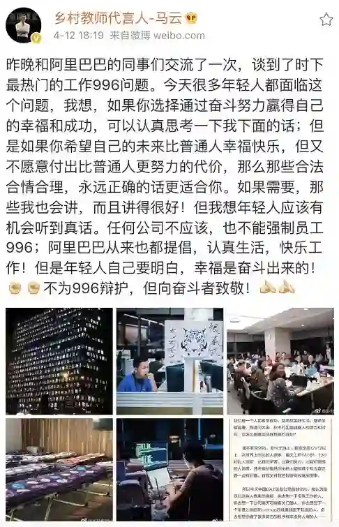 4.马云:不为996辩护,幸福是奋斗出来的