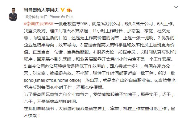 5.李国庆:坚决反对996 提高决策科学性比加班更有价值