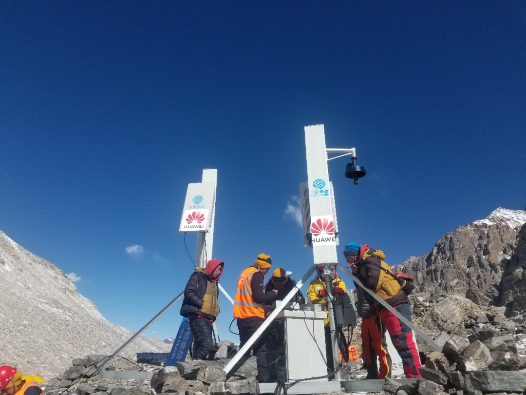 为了将信号铺满珠峰,华为从 2007 年就联合中移动开展 GSM(俗称 2G)网络覆盖工程;2012 年,在海拔 5300 米的中国境内大本营部署 3G 基站;2013年,完成4G基站部署;2019年,5G基站也被搬了上去。