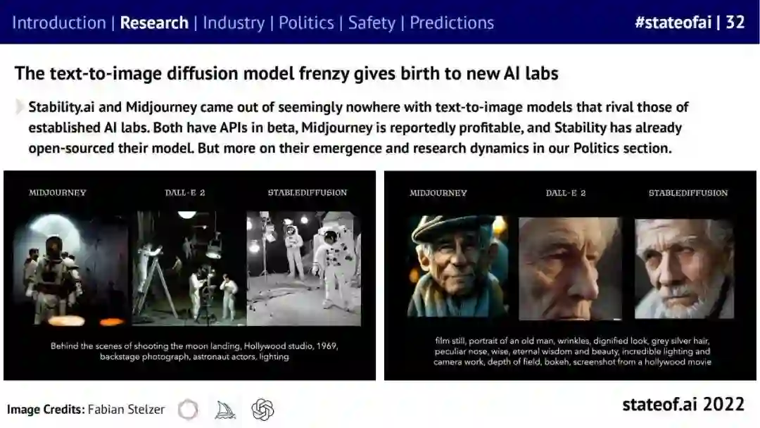 Stability.ai 和Midjourney两家公司所创建的文本转图像模型可以与已经发展成熟的人工智能实验室的产品相媲美。而通过这项技术,Midjourney实现了盈利,Stability则将其模型开源。