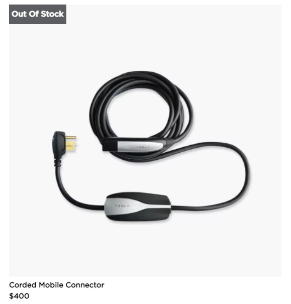 据外媒 electrek 报道,特斯拉计划不再随车提供移动充电线,而是选择单独出售。特斯拉美国官网显示,特斯拉两款充电线的售价分别为 275 美元(约合人民币 1755 元)和 400 美元(约合人民币 2552 元),两款产品都处于缺货状态。至于为何取消附赠移动充电线,马斯克表示:“使用统计数据非常低,因此看起来很浪费。而在有利方面,我们将在移动充电线套件中加入更多插头适配器。”