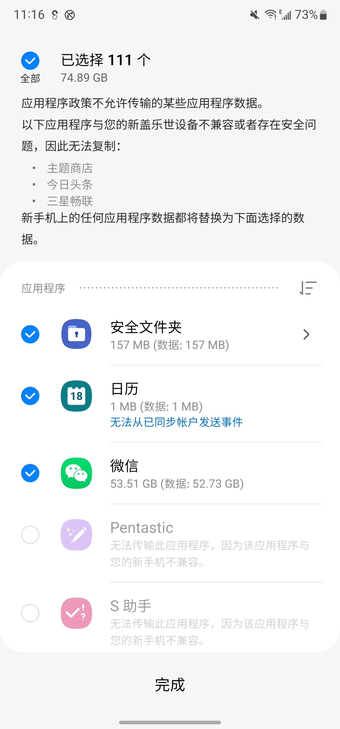据微博数码博主@盖乐世技术君 发布微博称,三星 Galaxy S22 Ultra 迎来了堪称史诗级的增强。更新后的三星换机助手可以直接同步微信数据,该博主还称使用了两台 Galaxy S22 Ultra 进行数据交换。最开始其中一台未更新换机助手补丁的手机无法同步,但更新补丁之后两台手机都可以直接同步微信数据。不过目前暂不清楚该功能是否为 Galaxy S22 Ultra 换机助手的专属功能