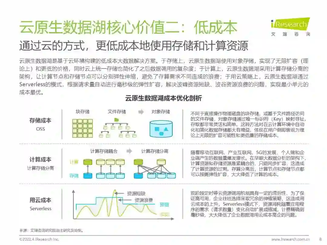 概念界定:数据湖是面向大数据场景的创新解决方案,云原生是数据湖未来部署的必然形态,具有「建立统一数据资产、低成本使用基础资源、高性能计算体验升级和敏捷创新赋能」的核心价值。