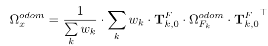 先前的方法使用固定帧间隔或者累积 位移/旋转 阈值进行划分,我们利用定位的不确定性来实现一个自适应的策略,将有高不确定性的区域划分为小的章节,以至于可以通过子图优化获得更好的非刚体位姿。特别地,对于一个构造的子图,我们持续地更新它的里程计的协方差: