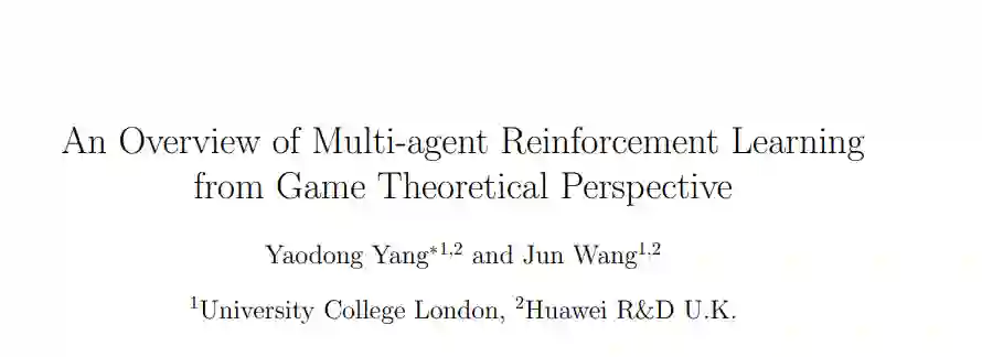 继AlphaGO系列的巨大成功之后,2019年是一个蓬勃发展的一年,见证了多智能体强化学习(MARL)技术的重大进展。MARL对应于多智能体系统中多个智能体同时学习的学习问题。这是一个具有悠久历史的跨学科领域,包括博弈论、机器学习、随机控制、心理学和优化。尽管MARL在解决现实世界的游戏方面取得了相当大的经验上的成功,但文献中缺乏一个完整的概述来阐述现代MARL方法的博弈理论基础,并总结最近的进展。事实上,现有的大多数综述都是过时的,没有完全涵盖2010年以来的最新发展。在这项工作中,我们提供了一个关于MARL的专著,包括基本原理和研究前沿的最新发展。本综述分为两部分。从§1到§4,我们介绍了MARL的完备的基础知识,包括问题公式、基本解决方案和现有的挑战。具体地说,我们通过两个具有代表性的框架,即随机博弈和广义博弈,以及可以处理的不同博弈变体,来呈现MARL公式。这一部分的目的是使读者,即使是那些相关背景很少的人,掌握MARL研究的关键思想。从§5到§9,我们概述了MARL算法的最新发展。从MARL方法的新分类开始,我们对以前的研究论文进行了调研。在后面的章节中,我们将重点介绍MARL研究中的几个现代主题,包括Q函数分解、多智能体软学习、网络化多智能体MDP、随机潜在博弈、零和连续博弈、在线MDP、回合制随机博弈、策略空间响应oracle、一般和博弈中的近似方法、以及具有无限个体的游戏中的平均场类型学习。在每个主题中,我们都选择了最基础和最先进的算法。我们调研的目的是从博弈理论的角度对当前最先进的MARL技术提供一个完备的评估。我们希望这项工作能够为即将进入这个快速发展的领域的新研究人员和现有的领域专家提供一个跳板,他们希望获得一个全景视图,并根据最近的进展确定新的方向。