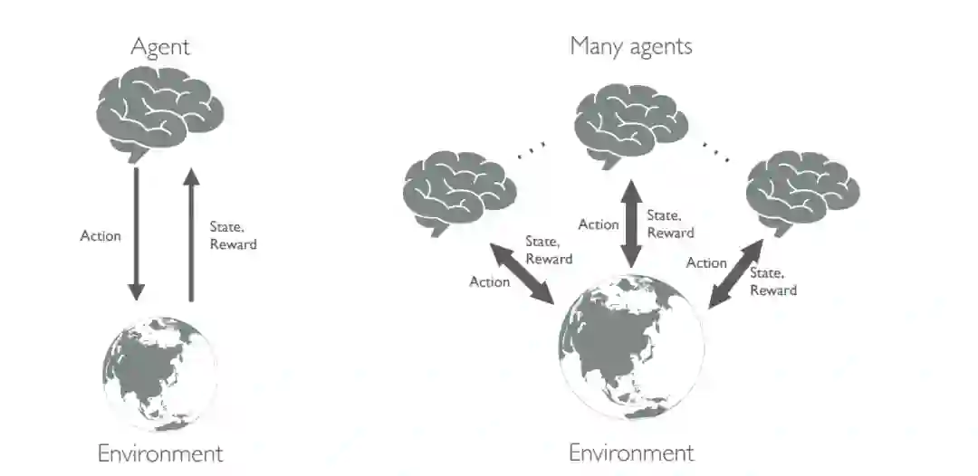 单代理MDP(左)和多代理MDP(右)示意图