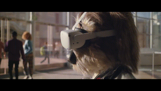 在这里,这只狗狗也一睹了Horizon Worlds的风采,还在这里和原来乐队里的朋友再一次相见。(Horizon Worlds是Meta开发的虚拟现实平台。)