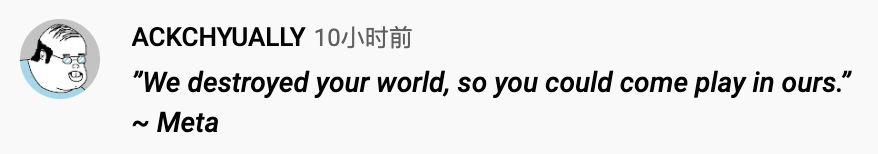 「我们摧毁了你的世界,所以你可以来我们的世界玩. ~ Meta」
