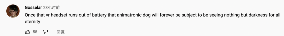 正如网友所提到的,一旦VR显电池耗尽,电子狗将永远只能看到的是黑暗。