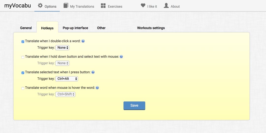 在 myVocabu 的设置中,你可以选择查词的方式,有双击、选中、快捷键、鼠标悬停等;还预制了数款主题样式,你可以依喜好随意搭配。