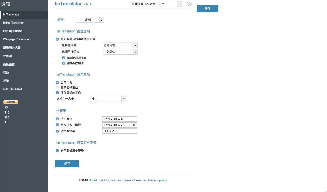 在 ImTranslator 的偏好设置中,你还可以指定默认语言,依个人喜好配置快捷键等,自定义程度极高。