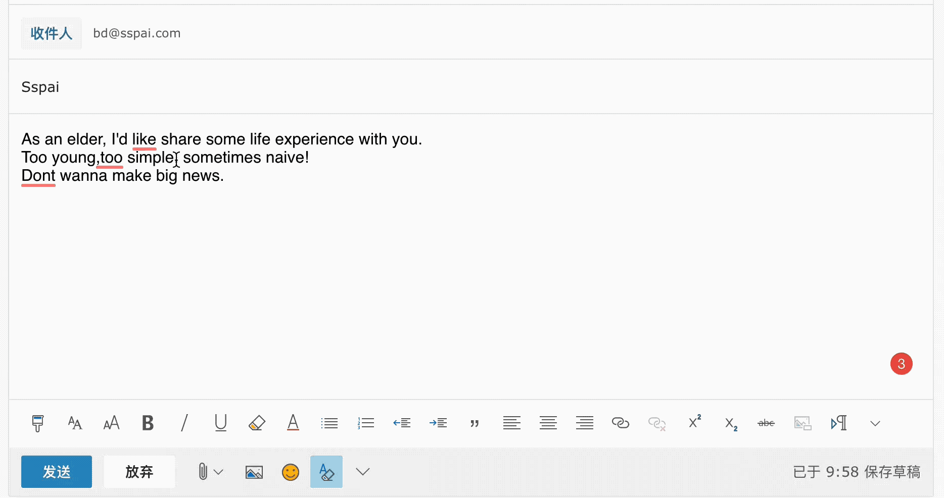 只学不练,你的外语水平也很难得到提升。因此,当积累了一定词汇量后,就到了动笔的时候了。如果你正在尝试书写一封英文邮件,可以试用一下 Grammarly 这款扩展,帮助你纠正错误语法。