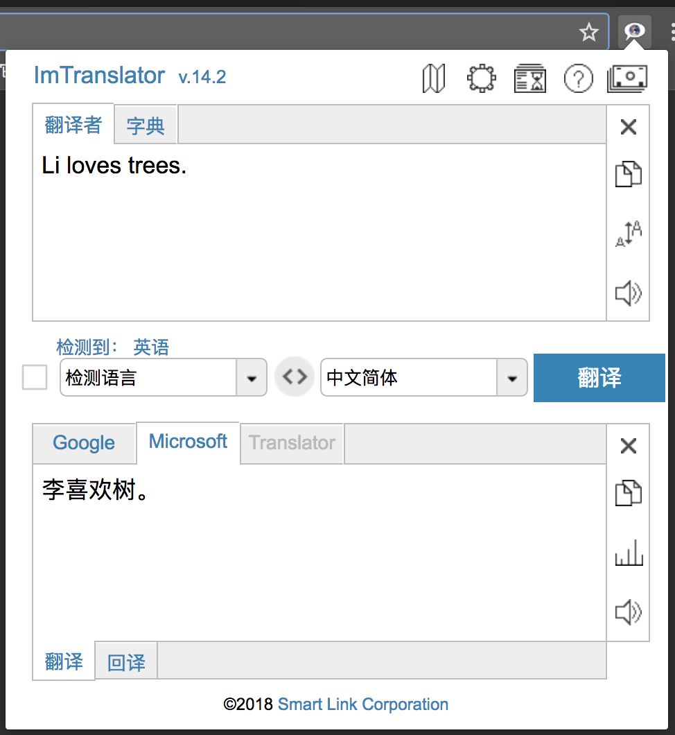 ImTranslator 是一款功能相当全面的多语言翻译扩展,安装后,只需要点击浏览器工具栏上的扩展图标,你就可以调用 Google、Microsoft 等引擎翻译所输入的整句或使用字典查询单词。点击右侧的小喇叭图标,你还可以聆听词句的标准发音。