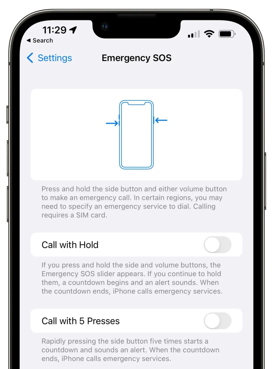iOS 15.2中更新了自动呼叫功能,该功能可以通过按一系列按钮来呼叫紧急服务。现在,您可以多次快速按侧键启动,或同时按住侧键和音量键。