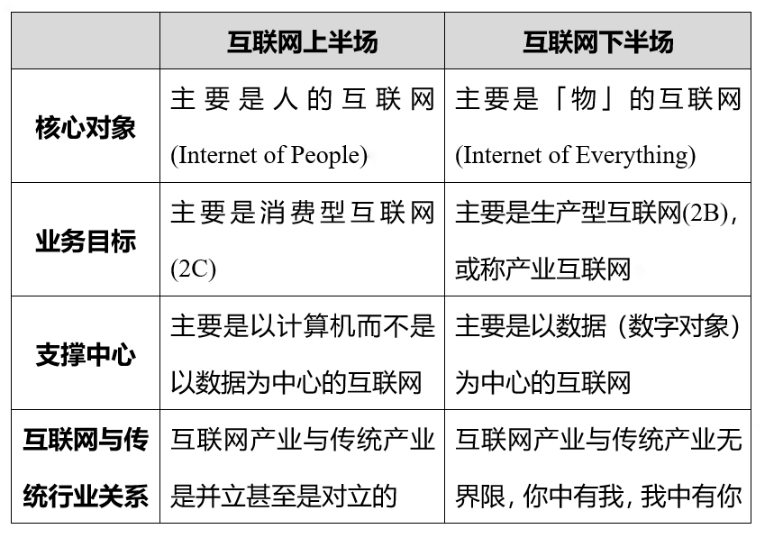 产业互联网是互联网下半场集中施力的方向。认识产业互联网,首先要明确其根植的互联网环境。从上半场到下半场,互联网发展的核心对象、业务目标、支撑中心、以及互联网和传统行业的关系等各个方面,均发生了显著变化。准确把握其特征,才能帮助企业在突破发展方向或者着力点上提供思路和方向。