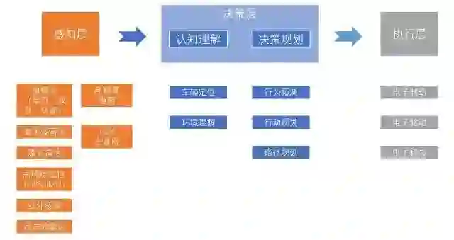 自动驾驶系统分为三个层级:感知层,决策层,执行层。