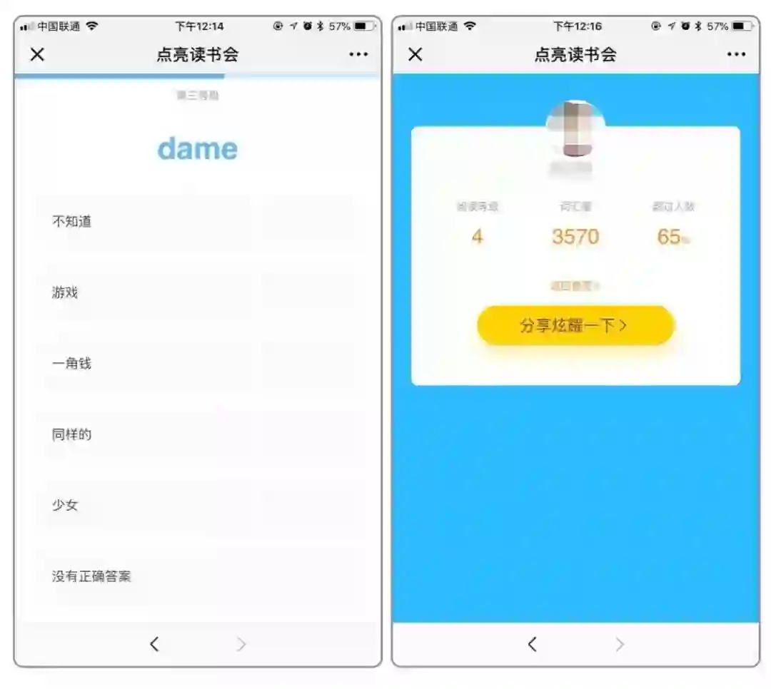 据统计,参与『点亮读书会』的同学,学习积极性远远高于普通学生,90%的学员都可以完成课程拿到现金奖励,并得到一个英语谈吐很好的自己。