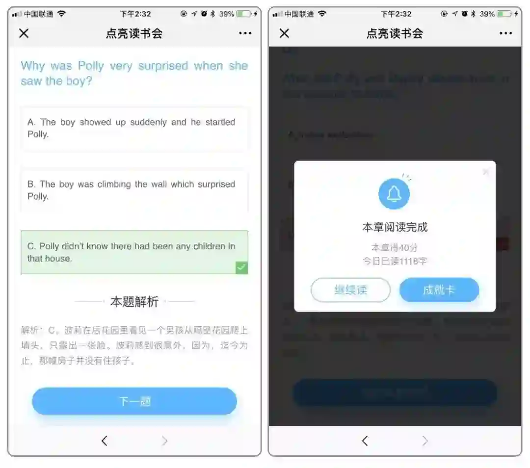 『点亮读书会』在阅读结束后,都有习题,精准回顾归纳,想要遗忘都困难!