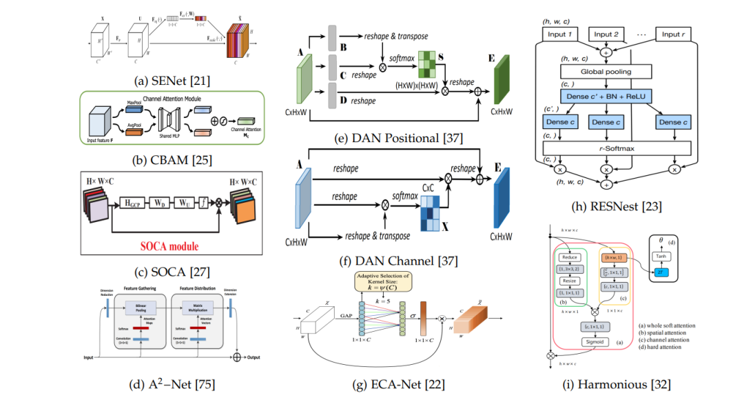在过去的几年里,注意力一直是重要的研究工作的中心,在许多不同的机器学习和视觉应用中,对图像注意力已经蓬勃发展,例如,分类[12],检测[13],图像描述[14],3D分析[15]等。尽管注意力技术在深度学习中的表现令人印象深刻,但目前还没有文献综述对所有的注意力机制(尤其是基于深度学习的视觉注意机制)进行全面的综述,并根据它们的基本底层结构对它们进行分类,突出它们的优缺点。最近,研究人员调研了特定于应用的注意力技术,重点是基于NLP的[16]、基于Transformer的[17]、[18]和基于图形的方法[19]。然而,目前还没有一项全面的研究对基于深度学习的注意力技术的进行广泛调研。