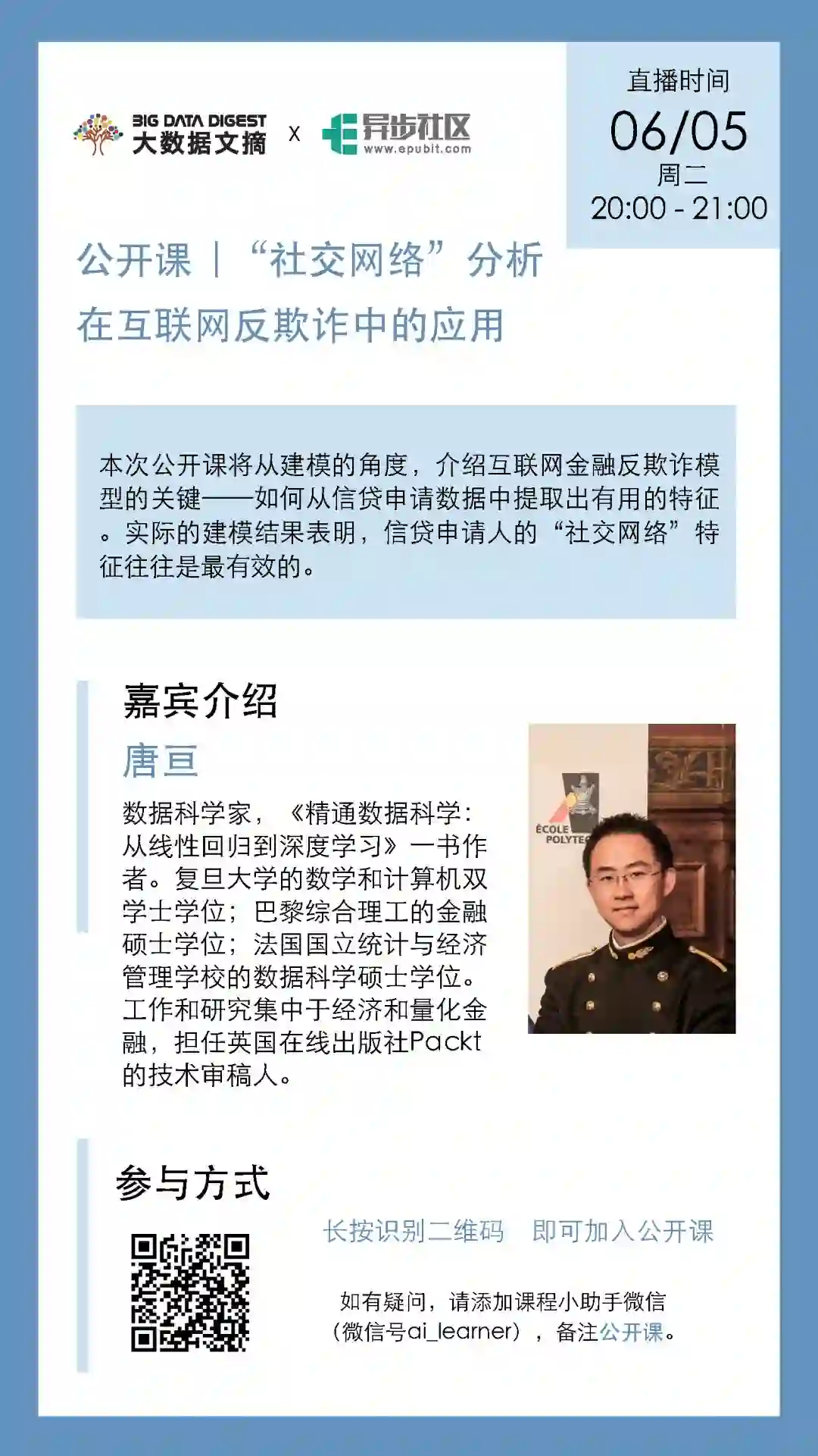 *剧透:本文作者将在本周二带来题为《社交网络分析在互联网反欺诈中的应用》,感兴趣的读者可以直接拉至文末扫码报名哦!