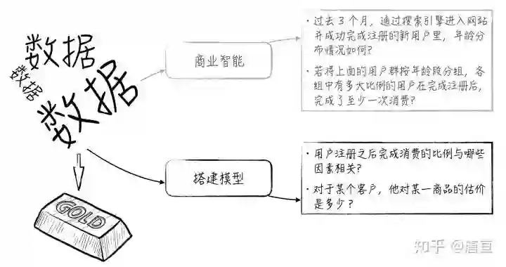 比如商业智能中最常见的问题是:“过去3个月,通过搜索引擎进入网站并成功完成注册的新用户里,年龄分布情况如何?若将上面的用户群按年龄段分组,各组中有多大比例的用户在完成注册后,完成了至少一次消费?”