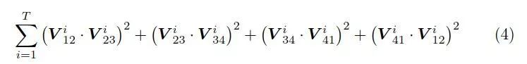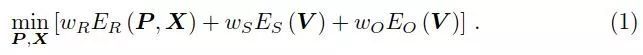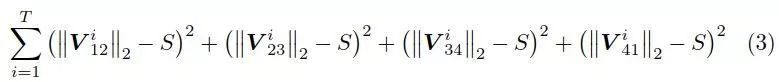 V表示在每个标记上相邻的3D角点形成的向量集(即每个标志有4个矢量),wR,wS和wO表示权重,重投影误差: