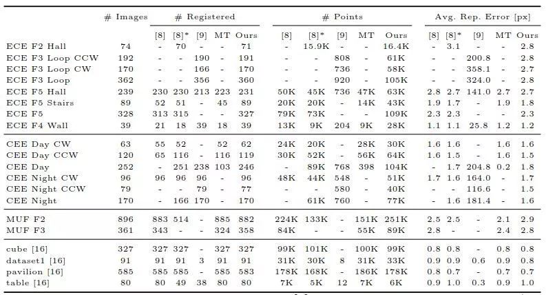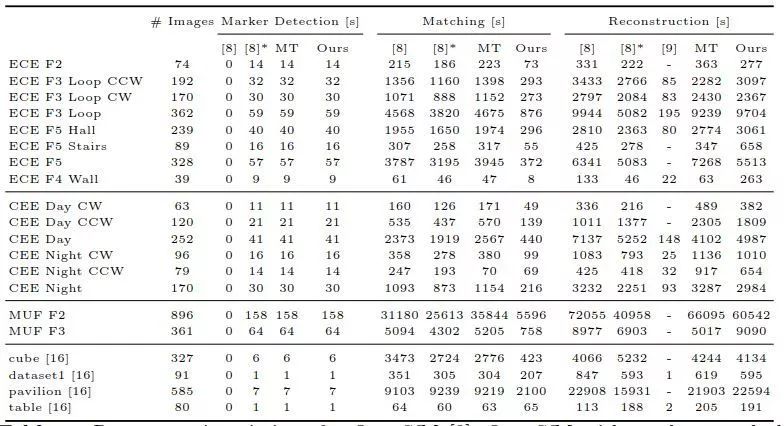 表2 用标记来限制可能的图像对大大减少了匹配时间。总的来说,我们的方法在更短的时间内产生了更好的重建。
