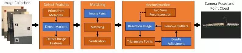 1.一种SfM算法,使用基准标记(当可用时)和兴趣点特征来改进结果;