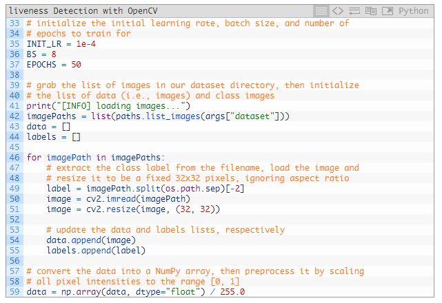 你将在本教程剩下的部分学习如何获取我录制的数据集以及如何将它实际应用于通过 OpenCV 和深度学习建立的活体检测器。