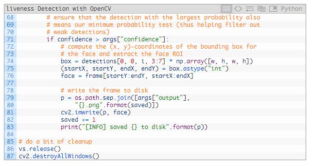 1. gather_examples.py:这个脚本从输入的视频文件中提取了面部 ROI,帮助我们创建了深度学习面部活体数据集;
