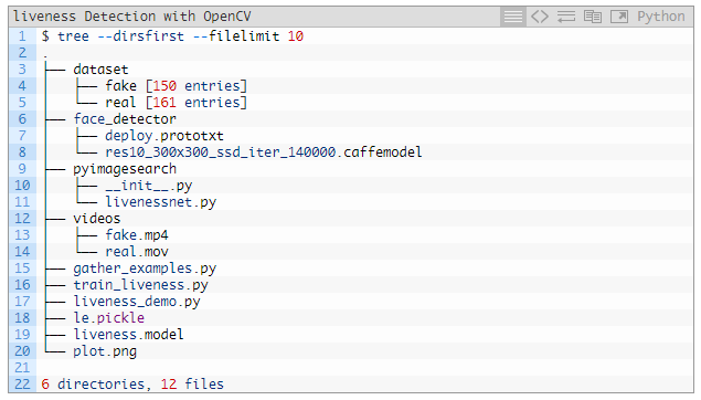 Pyimagesearch/:该模块包含了 LivenessNet 类;