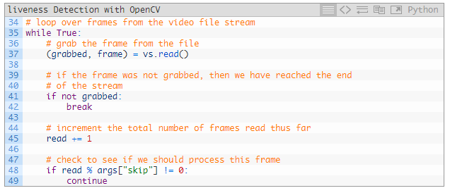 根据这些帧,我们后续将在这些图像上训练基于深度学习的活体检测器。