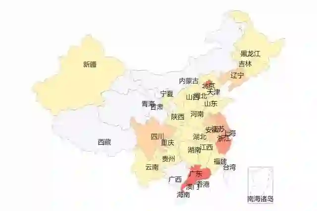 首先,我们可以从地图中可以看出,北京市(17.18%)、上海市(11.04%)、浙江省中杭州(13.50%),广东省中深圳(8.59%)和广州(9.52%)。可见,北京市程序员占比还是蛮高的