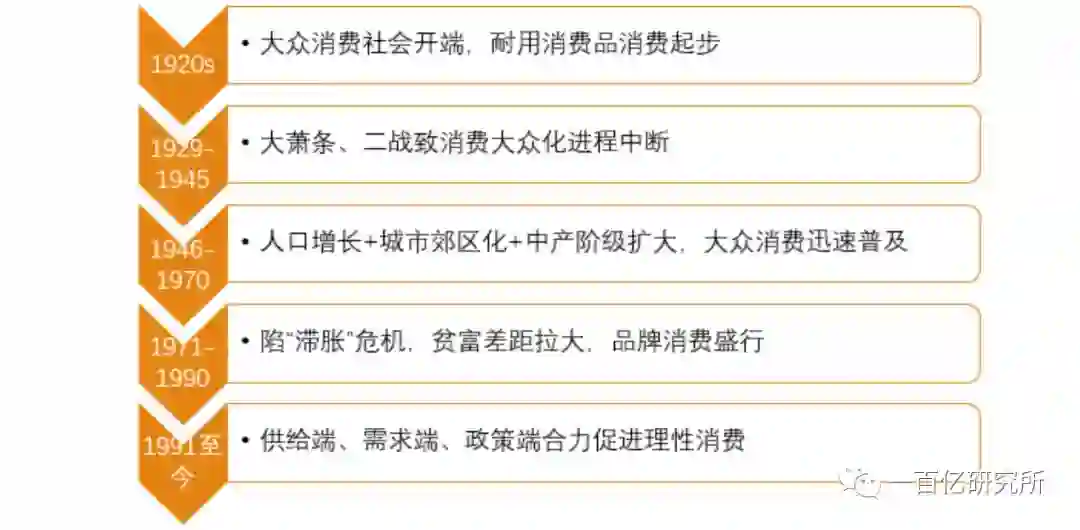 美国历史经验:从大众消费-品牌消费-理性消费,从商品消费-服务消费
